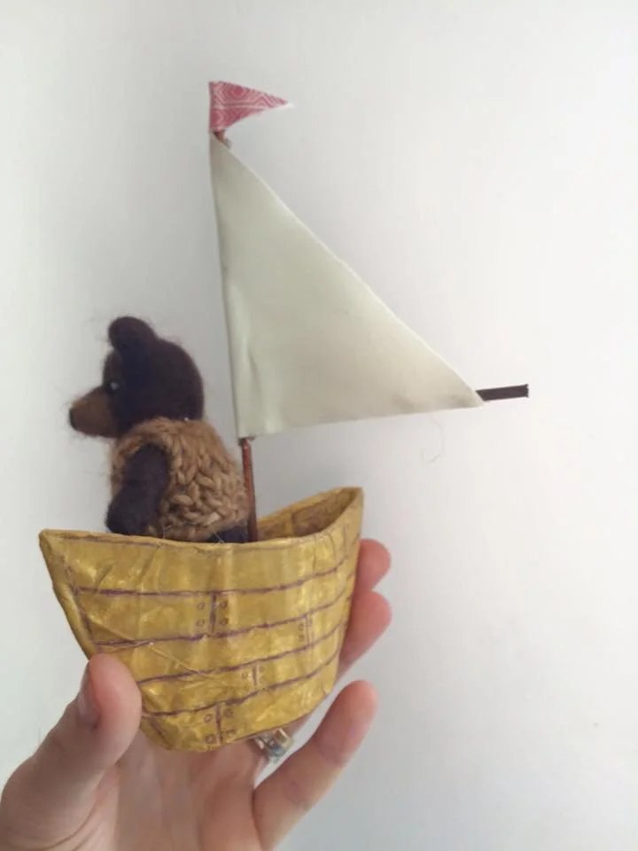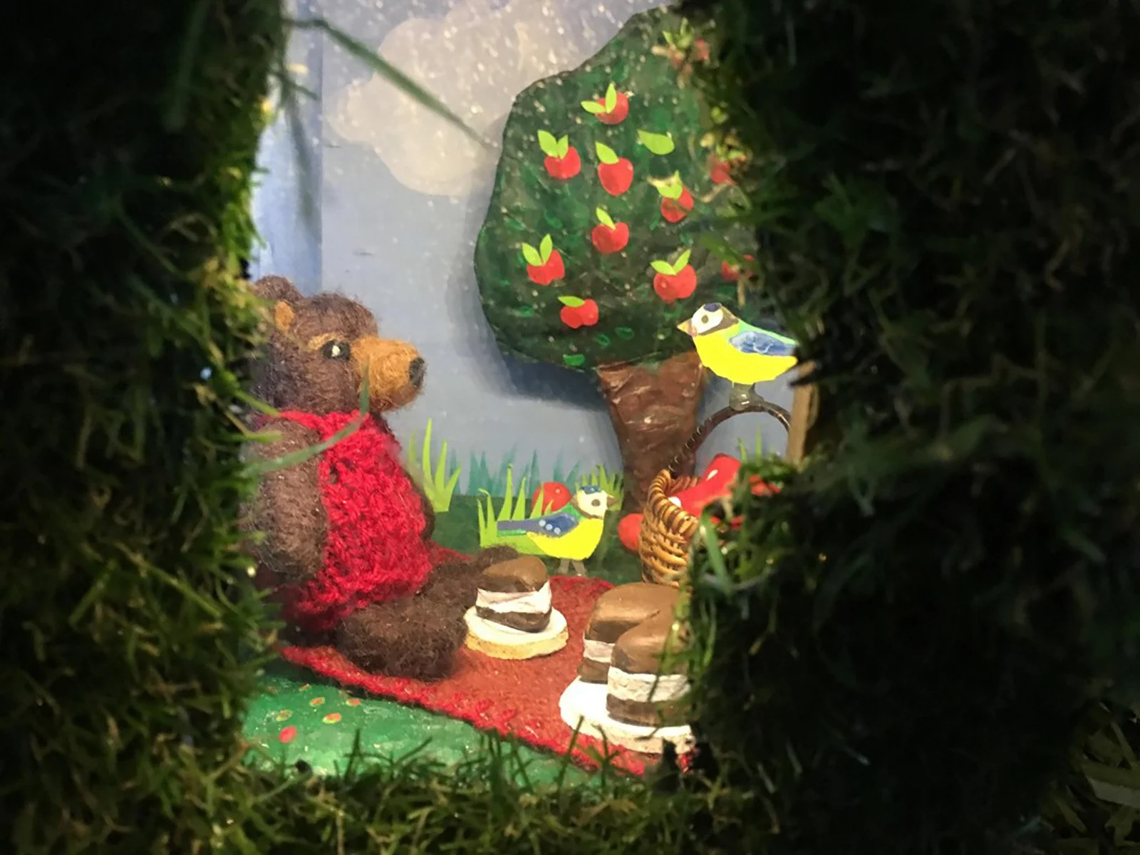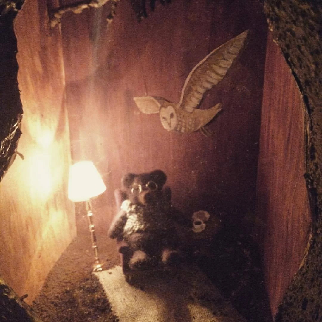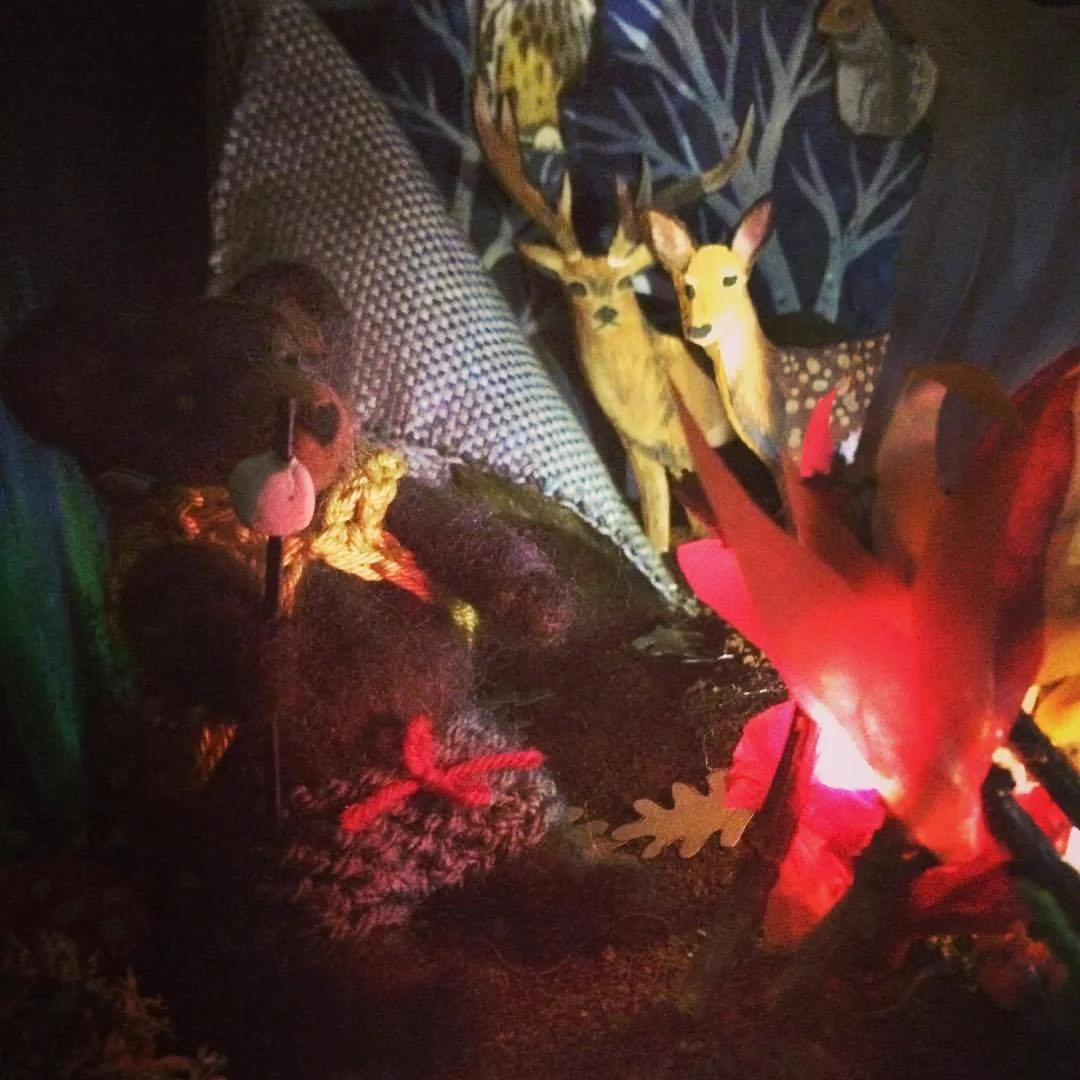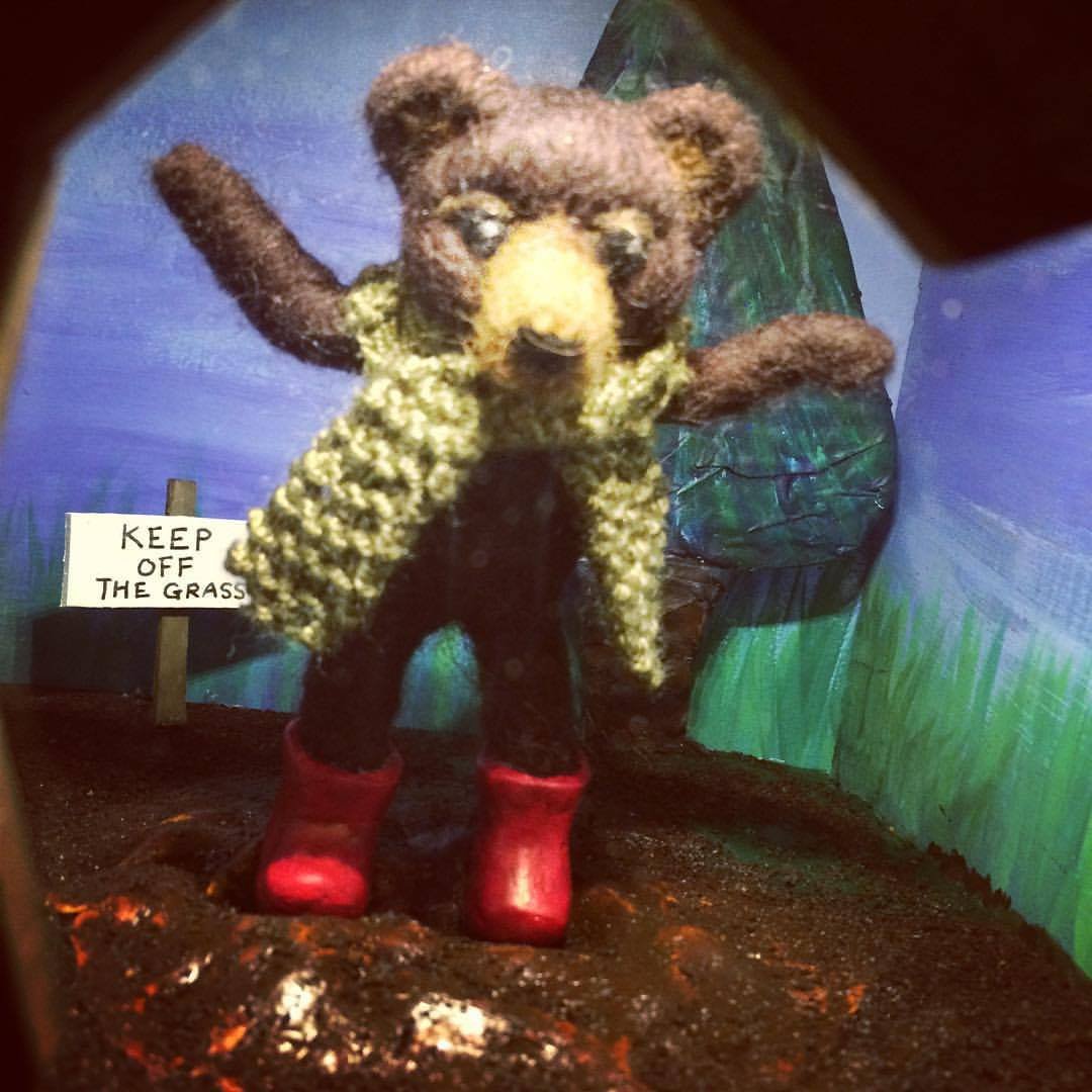 I was commissioned by The Discover Children’s Story Centre to create six 3D mini bear worlds to be part of Michael Rosen’s Bear Hunt, Chocolate Cake & Bad Things interactive experience at the Discover Children’s Story Centre in London. It was such a wonderful project to work on. I made all the elements in my studio and then brought them to The Discover centre to install the lighting and the intricate handmade diorama scenes of needle felted bears with wire armatures for the children to find on their bear hunt.