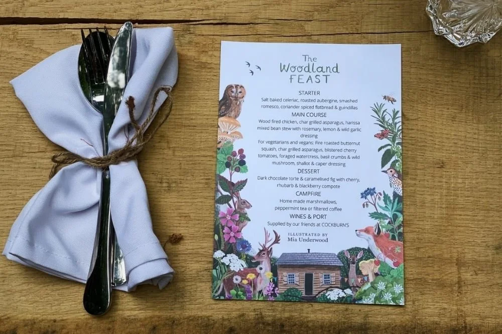 I was commissioned by SECRET ADVENTURES to illustrate a wild woodland surround for their Woodland Feast’s event menu.