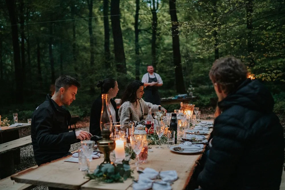 The event itself is a four course woodland feast set in beautiful mature woodlands in Goring Heath, South Oxfordshire, UK.